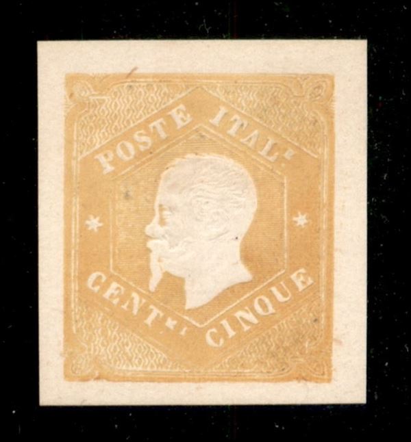 1863 - Saggi - Grazioli - 5 cent giallo arancio (Unificato 21) nuovo senza gomma (240)