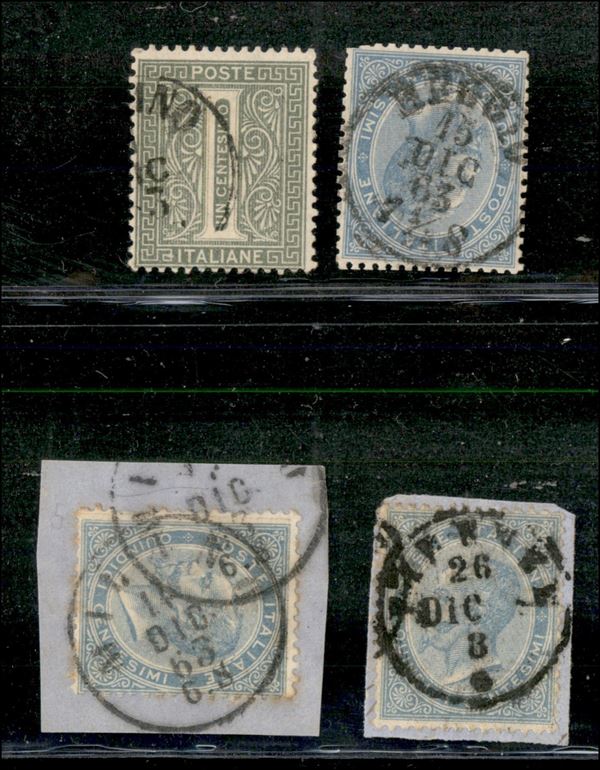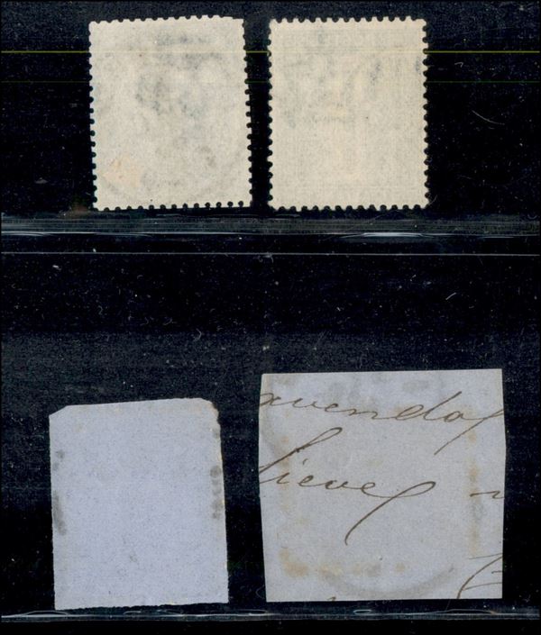 1863 (dicembre) su De La Rue - 1 cent (L14) + 15 cent (L18) usati + due 15 cent (L18) su frammenti