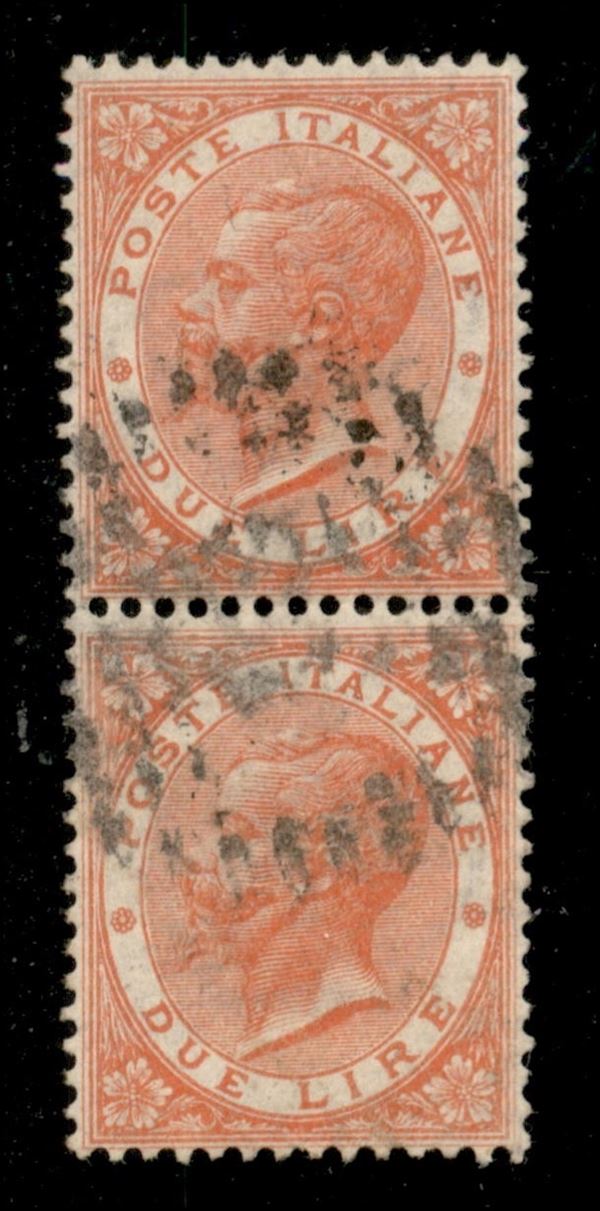 1866 – 2 lire Torino (T22) – coppia verticale usata (350)
