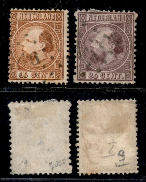 1867 - Guglielmo III a sinistra - 15 cent (9IC) + 25 cent (11IA) - 2 valori usati (155)