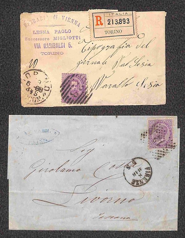 1867/1901 - Insieme di 2 lettere + 2 raccomandate con affrancature di Umberto