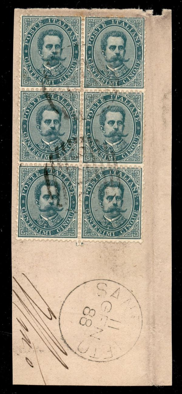 1879 - 5 cent (37) - blocco di 6 su frammento