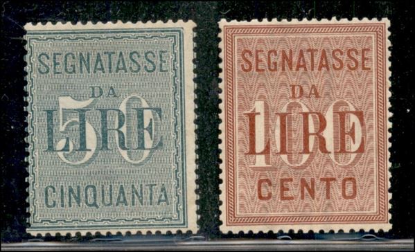 1884 - Segnatasse (15/16) - serie completa - gomma integra - 100 lire con aderenze di colore