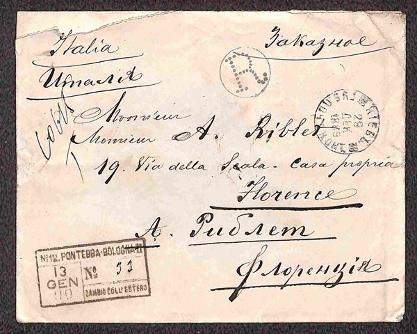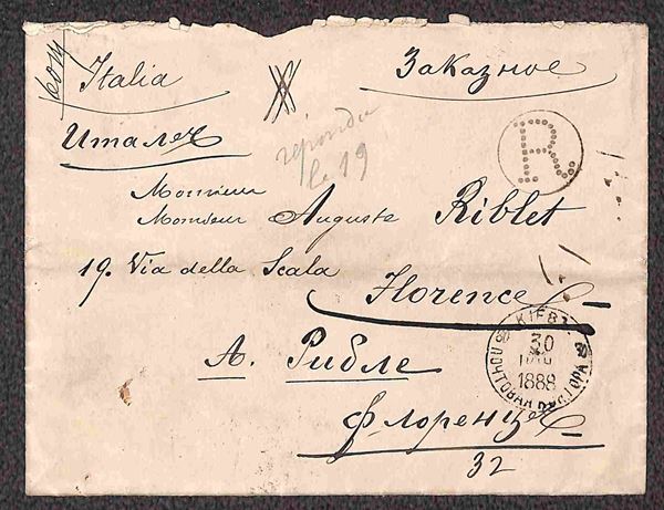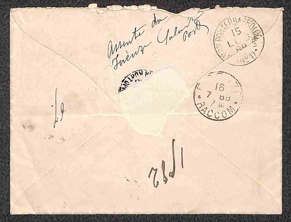 1888/1889 - Tre buste raccomandate per Firenze - non affrancate con parti del retro asportate
