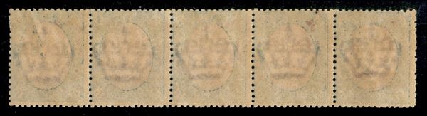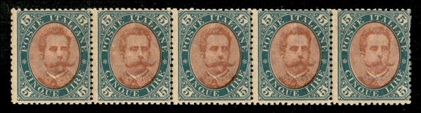 1889 - 5 lire Umberto (49) - striscia di cinque - gomma integra (375)