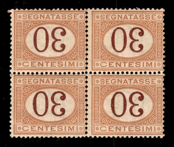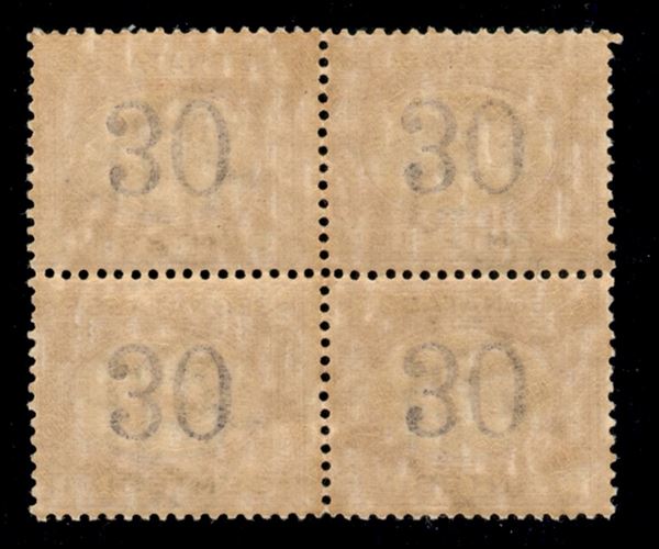 1890 - 30 cent (23a) - quartina con cifre capovolte - gomma integra (120+)