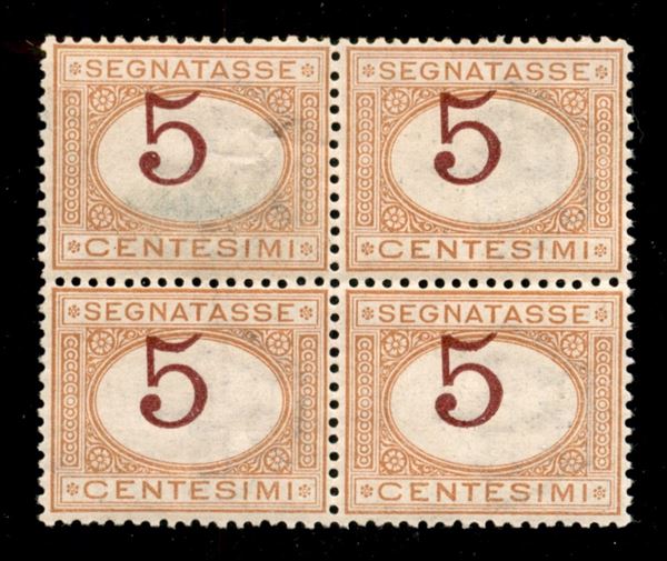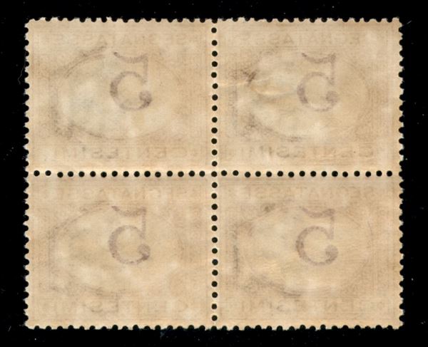 1890 - 5 cent (20c) - quartina con cifre spostate - gomma integra - centratura perfetta - molto bella (300++)