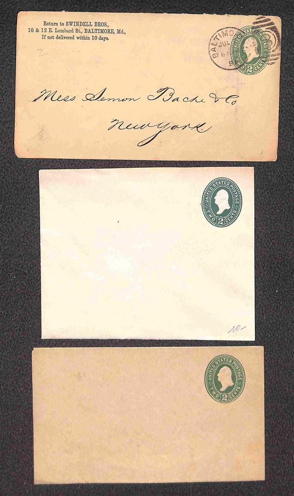 1890 circa - Tre buste postali da 2 cent di formati diversi - una usata