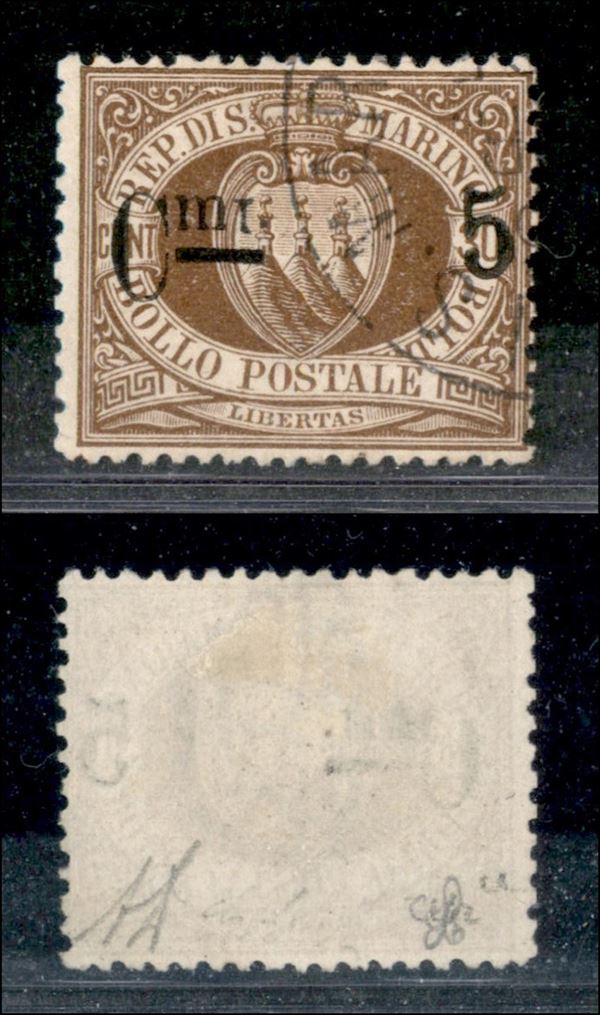 1892 - 5 cent su 30 (9 - varietà) usato - i capovolto - non catalogato - Diena