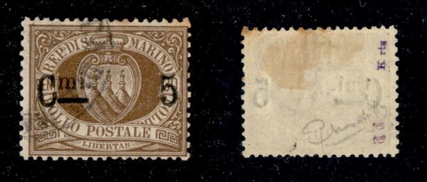 1892 - 5 cent su 30 Stemma (9) - usato - firma Mondolfo (175)