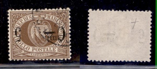 1892 - 5 cent su 30 Stemma (9a) - soprastampa capovolta - usato (225)