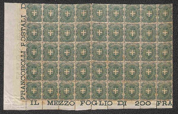 1897 - 5 cent Stemma (67) - blocco angolare di 45 nuovo con gomma originale integra - ben centrati (5.500+)