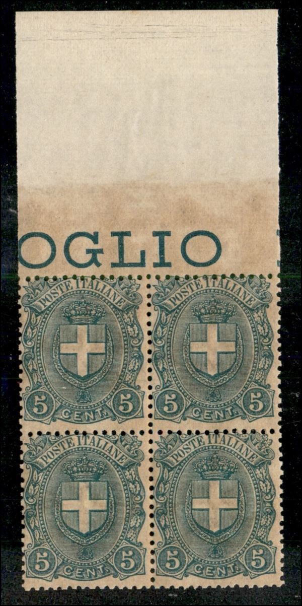 1897 - 5 cent Stemma (67) - quartina bordo foglio - gomma integra (270+)