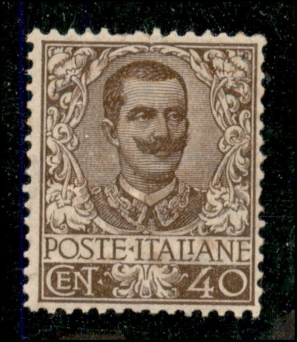 1901 - 40 cent Floreale (74) - gomma originale - dentellatura difettosa in alto (1.200)