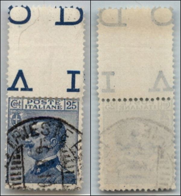 1908 - 25 cent Michetti (83) usato con intero interspazio di gruppo unito in alto