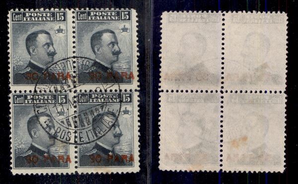 1908 - 30 para su 15 cent (15ec) - quartina usata - soprastampa a destra