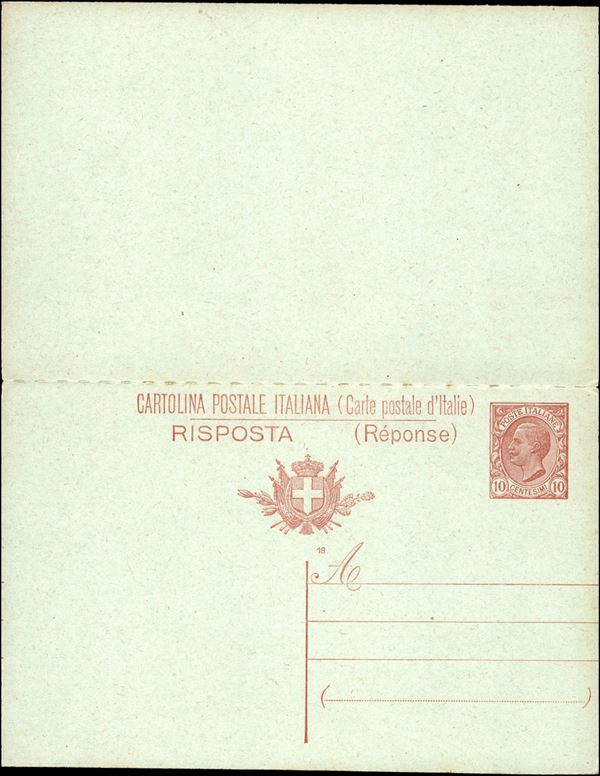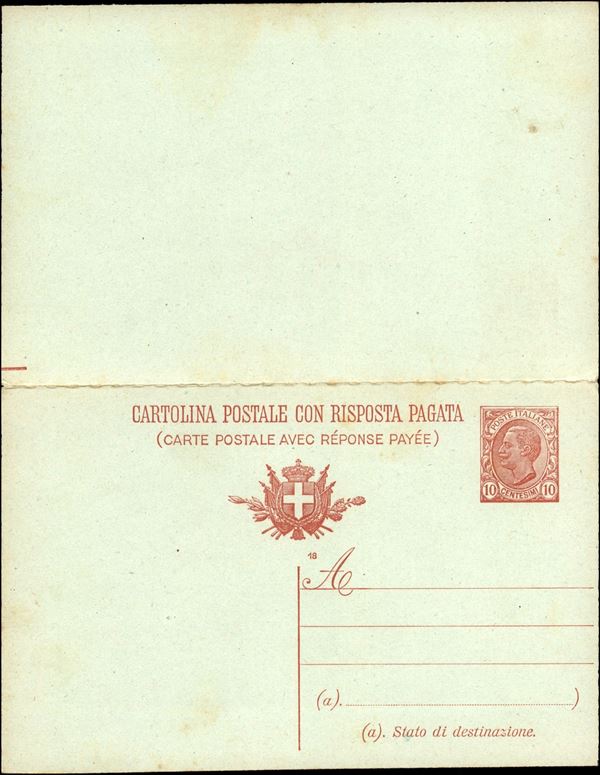 1908 - Cartolina postale con risposta da 10 + 10 cent (C40Aa) - risposta al retro della domanda - nuova