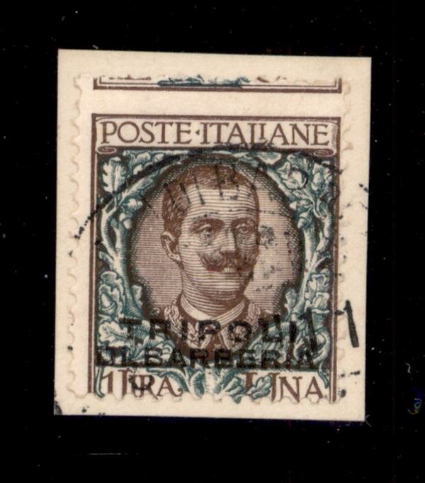 1909 - 1 lira Floreale (9 - varietà) usato su frammento - dentellatura orizzontale spostata in alto - non catalogato