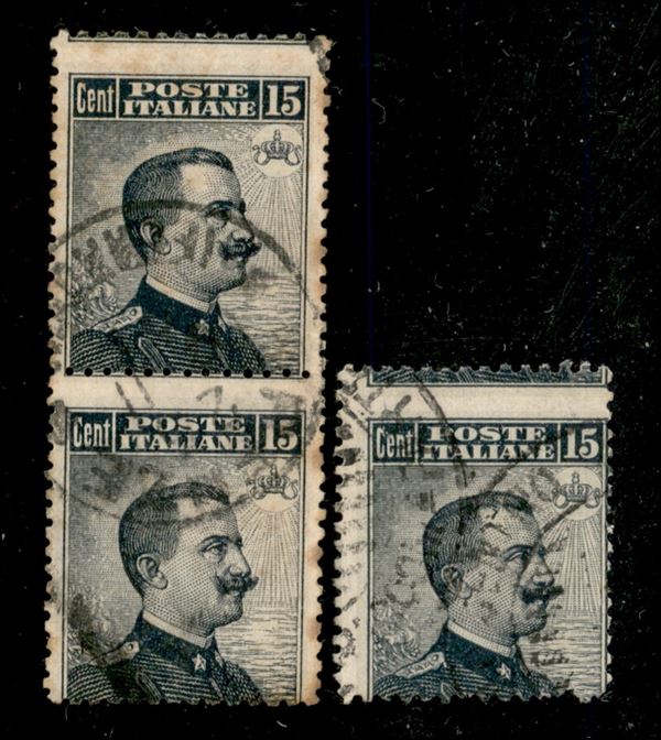 1909 - 15 cent Michetti (86) con dentellature spostate - coppia e singolo usati