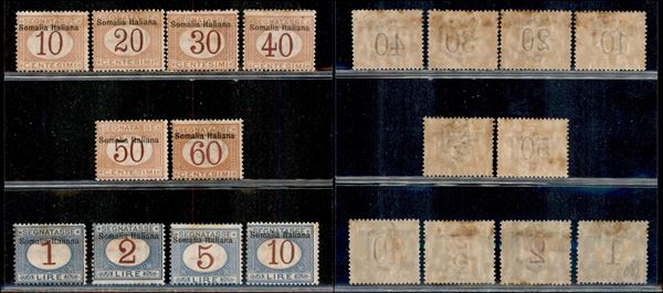 1909 - Soprastampati (13/22) - insieme di 10 valori - gomma originale - qualche leggero ingiallimento - 3 valori con soprastampe spostate in basso/non catalogati (1.500+)