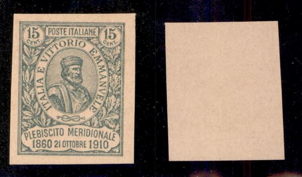 1910 - Prova di Macchina - 15 cent Garibaldi (90) non dentellato in verde su cartoncino crema - senza gomma