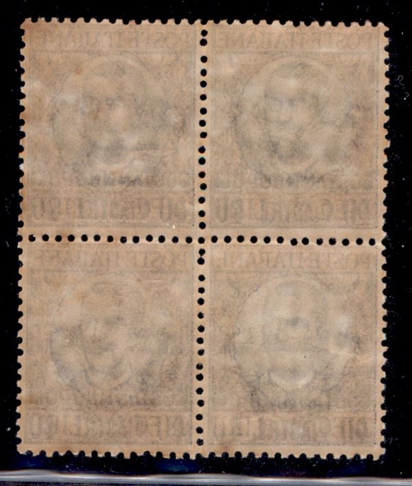 1911 - 40 piastre su 5 lire Floreale (27) - quartina - gomma integra
