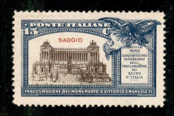 1911 - Saggio - Cinquantenario del Regno - 15 cent (Unificato 98) - gomma integra