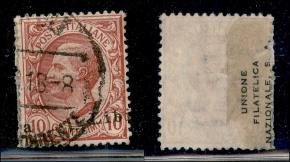 1912 - 10 cent Leoni (4d) usato - soprastampa obliqua a cavallo ( a Libi)