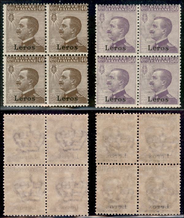 1912 - 40 cent + 50 cent Michetti (6+7) - insieme di due valori in quartine - gomma integra