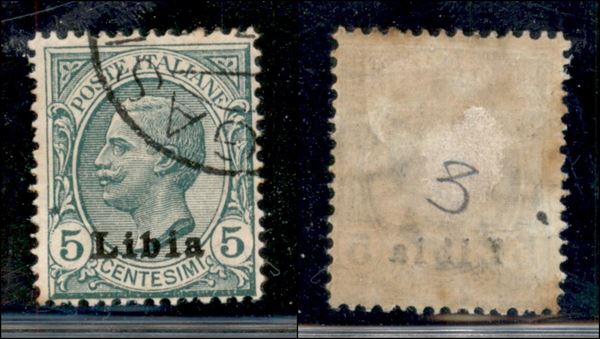 1912 - 5 cent Leoni (3e) usato - doppia soprastampa (120)