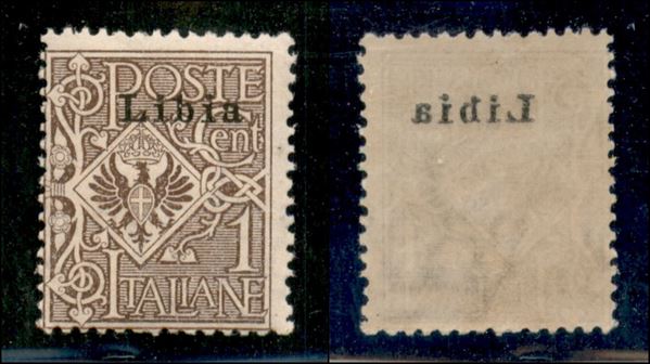 1915 - 1 cent Floreale (1 l) con soprastampa in alto + decalco - gomma integra (180)