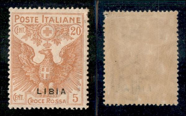 1916 - 20 cent Croce Rossa (16ac) con soprastampa sottile in basso - gomma originale (150)