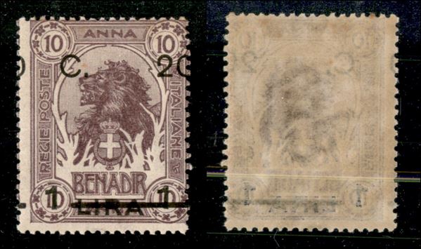 1916 - 20 cent su 1 lira su 10 anna (18d) con soprastampa spostata (0 a cavallo) - gomma integra (225)