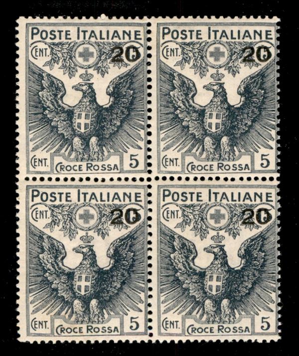 1916 - 20 cent su 15 Croce Rossa (104) in quartina - gomma integra (250+)