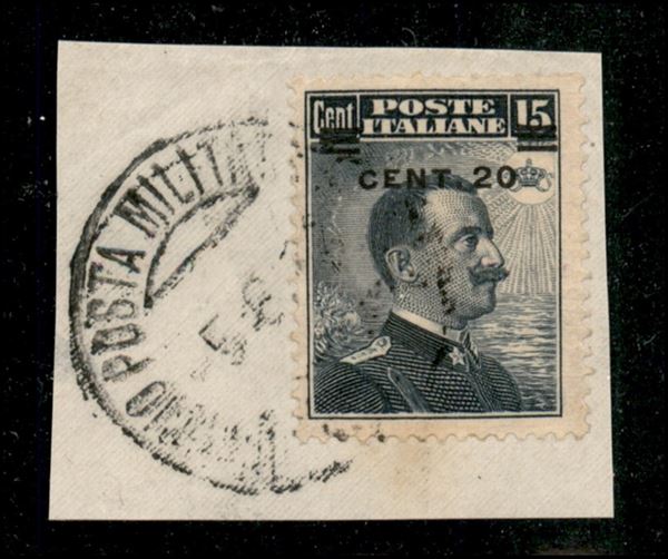 1916 - 20 cent su 15 Michetti (106i) - soprastampa spostata - usato su frammento