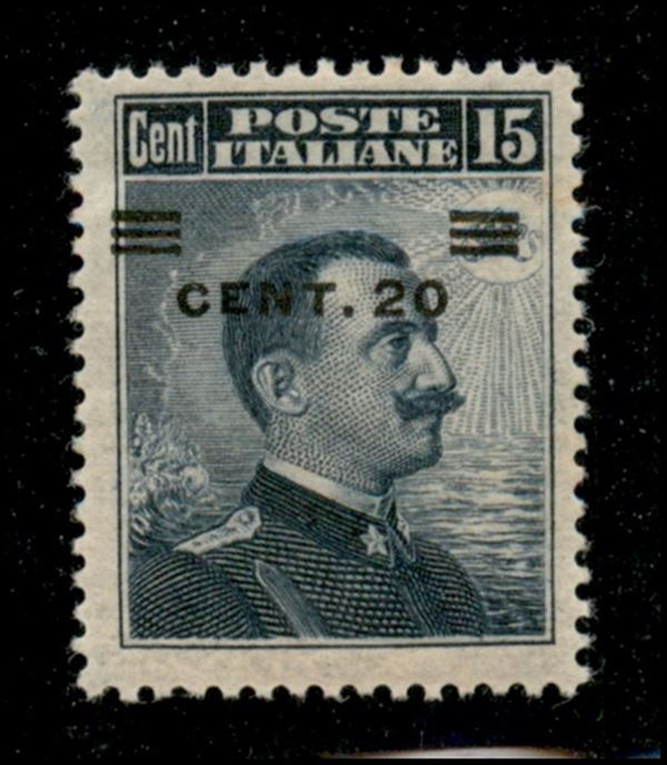 1916 - 20 cent su 15 Michetti (106i) - soprastampa spostata (doppio valore) - gomma originale