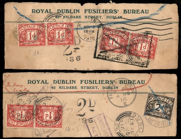 1916 - Due testate di buste per cittą tassate del novembre 1916