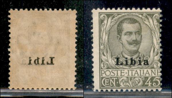 1917 - 45 cent Floreale (18d varietà) con decalco (solo Libi) - gomma originale (140+)