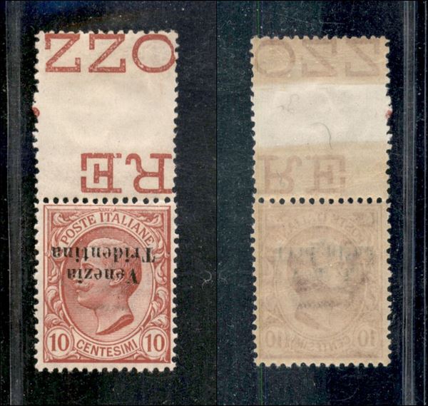 1918 - 10 cent (22aa) con soprastampa capovolta - bordo da interspazio in alto - gomma integra (675++)