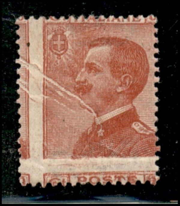 1918 - 60 cent Michetti (111 varietà) con dentellatura molto spostata a sinistra e in basso (0 Poste 6 in basso) + pieghe naturali di carta sulla sinistra - gomma originale