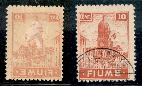 1919 - 10 cent Fiume (C35n - carta C) con decalco - non quotato usato