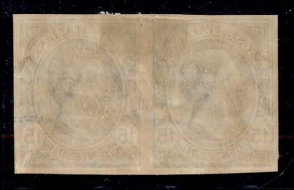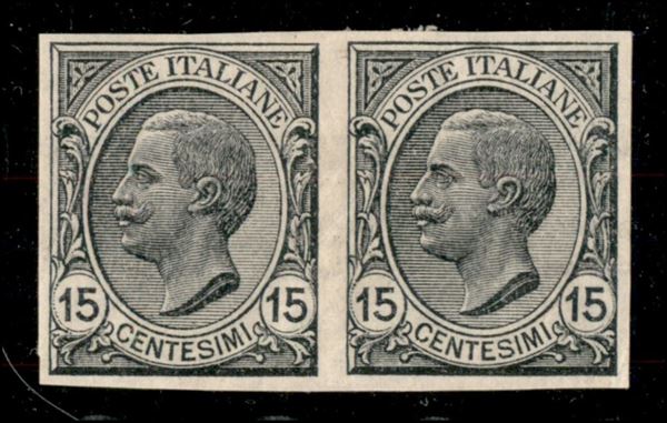 1919 - 15 cent Leoni (108d) - coppia non dentellata - gomma originale (360)