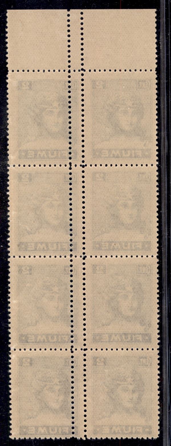 1919 - 2 cent (C32m) - blocco verticale di 8 con doppia dentellatura verticale - gomma integra