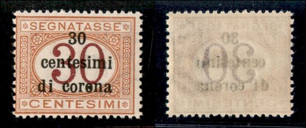 1919 - 30 cent su 30 Segnatasse (4f) - errore Corena - gomma integra (300)