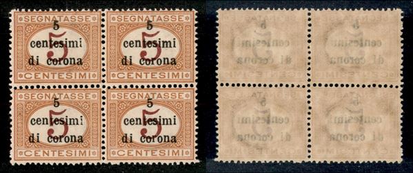 1919 - 5 cent su 5 Segnatasse (1) in quartina - gomma integra - ottimamente centrati (280)