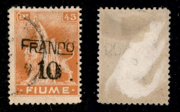 1919 - Franco 10 su 45 cent (C77eaa - carta C) usato - soprastampa obliqua (100)