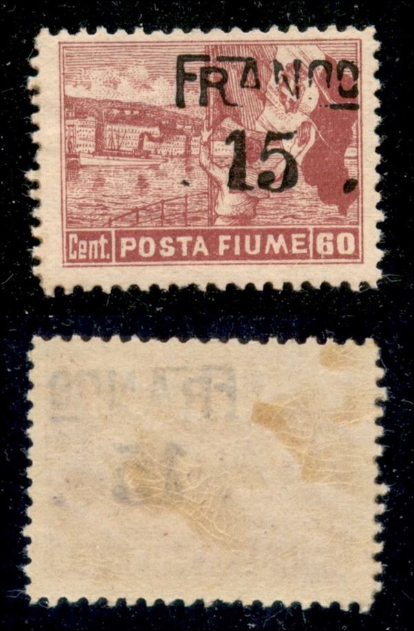 1919 - Franco 15 su 60 cent Posta Fiume (D80vda) con soprastampa in alto a destra - gomma originale (100)