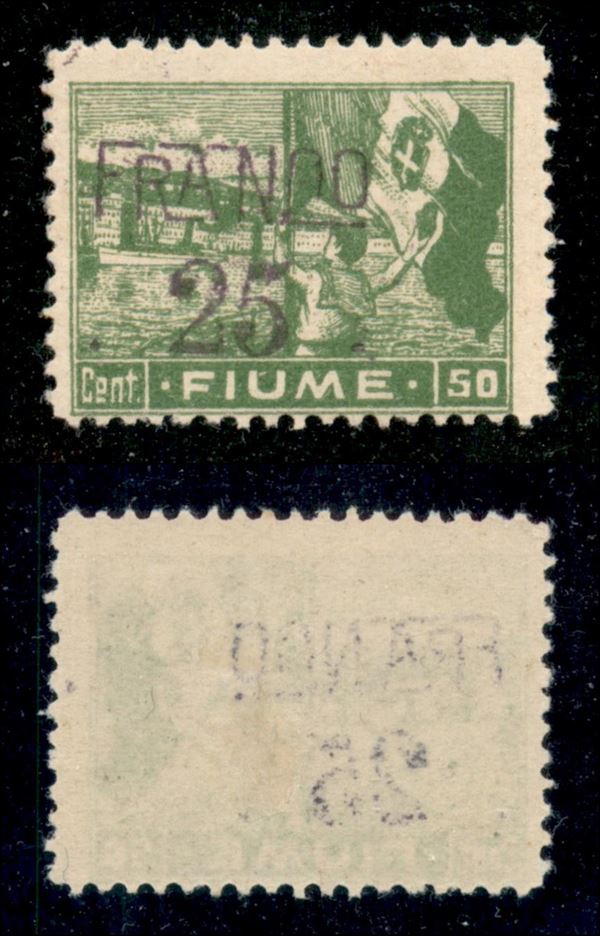1919 - Franco 25 su 50 cent (C81 varietà - carta C) - soprastampa a sinistra - gomma originale - non catalogato
