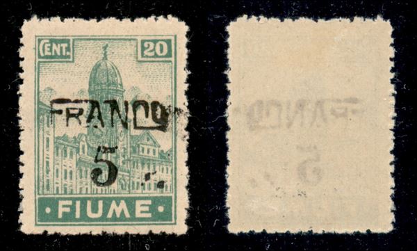1919 - Franco 5 su 20 cent (C75 varietà - carta C) - doppio punto dopo 5 - gomma originale - non catalogato
