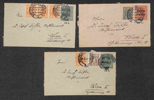 1920 - Tre biglietti postali con affrancature complementari per Vienna